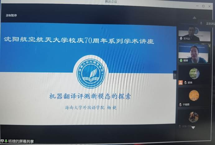 2022年1月7日下午,海南大学Williamhill中文副院长杨婕副教授应邀为Williamhill中文师生做了题为“机器翻译评测新模态的探索”学术讲座。受疫情影响,学术讲座使用腾讯会议平台线上进行。
